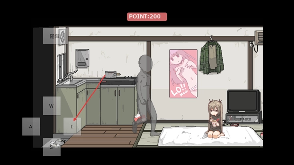 3、在场景界面内,点击左下角的方向键控制角色的移动,探索房间内的物品。