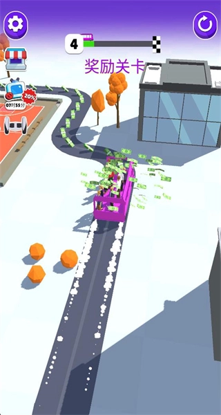 3、抵达目标区域,完成乘客运送,积累经营资源,推进关卡进度。