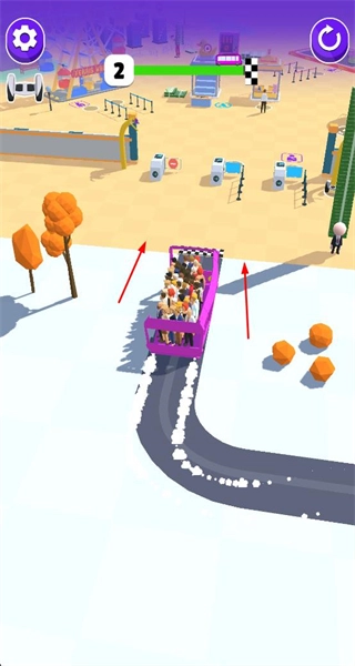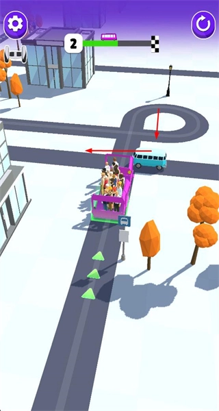 2、驾驶巴士沿路线行驶,规避障碍保障通行,顺利运送乘客至目的地。