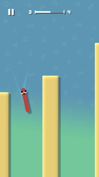 2.你可以用手指来滑动屏幕,按压屏幕来让香肠飞出去,黏住障碍物。