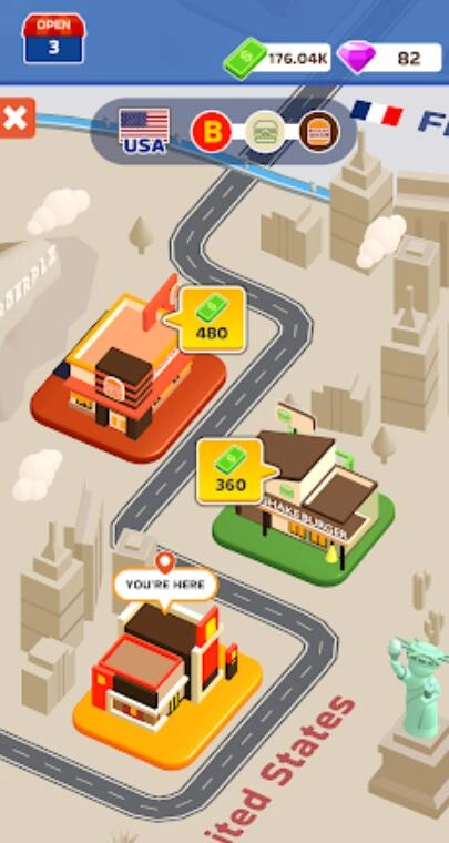 4.没有厨师能独自成长。通过智能管理招聘、培训员工并提高团队绩效。一个强大的团队将帮助您处理高峰期,保持桌面清洁,并提供从芯片和饮料到高品质汉堡包的一切。有了良好的策略,您的快餐业务将比以往任何时候都更快地发展。