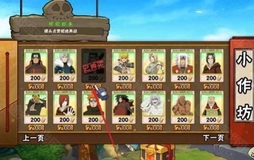 2、然后小作坊商店的界面会被打开,你可以在这里购买各种忍者角色的卡牌,用于进行战斗。