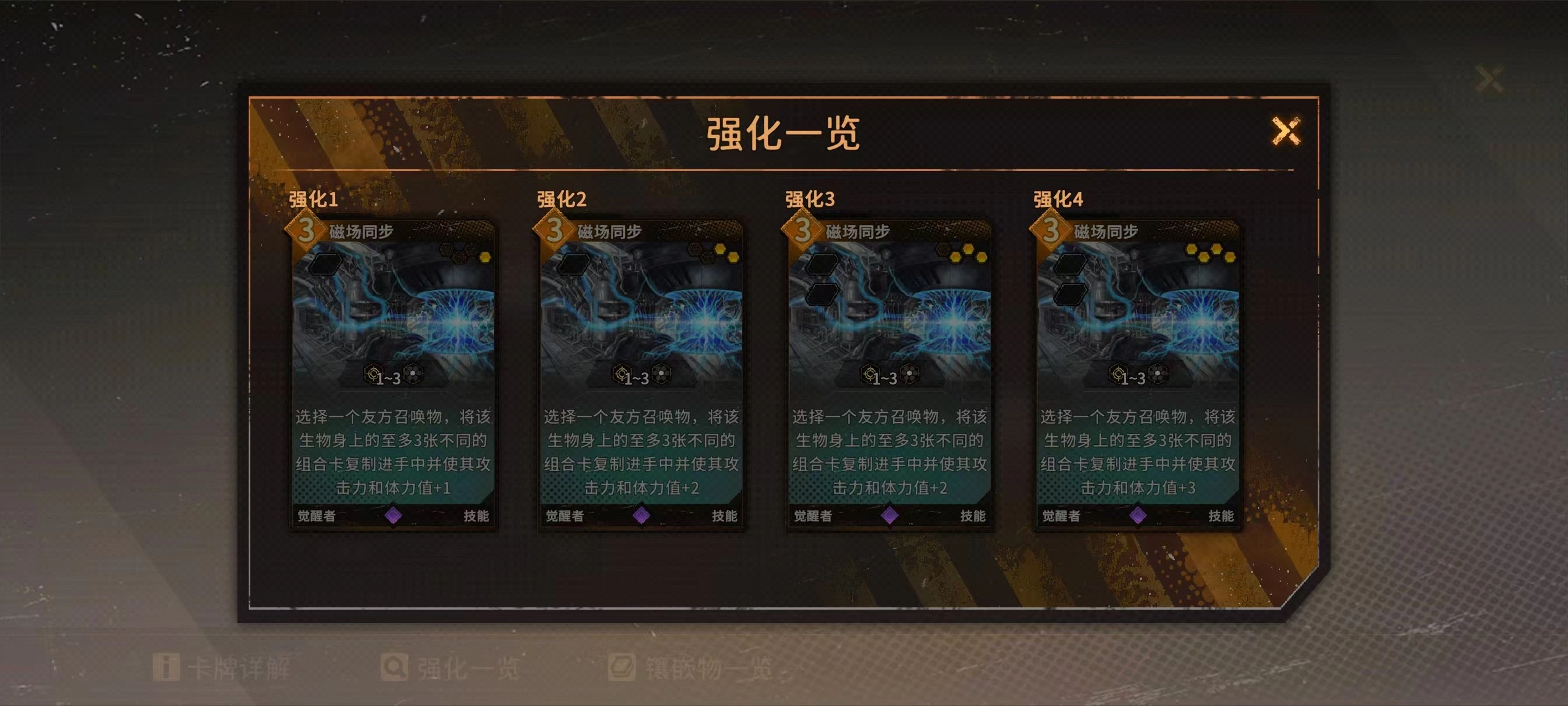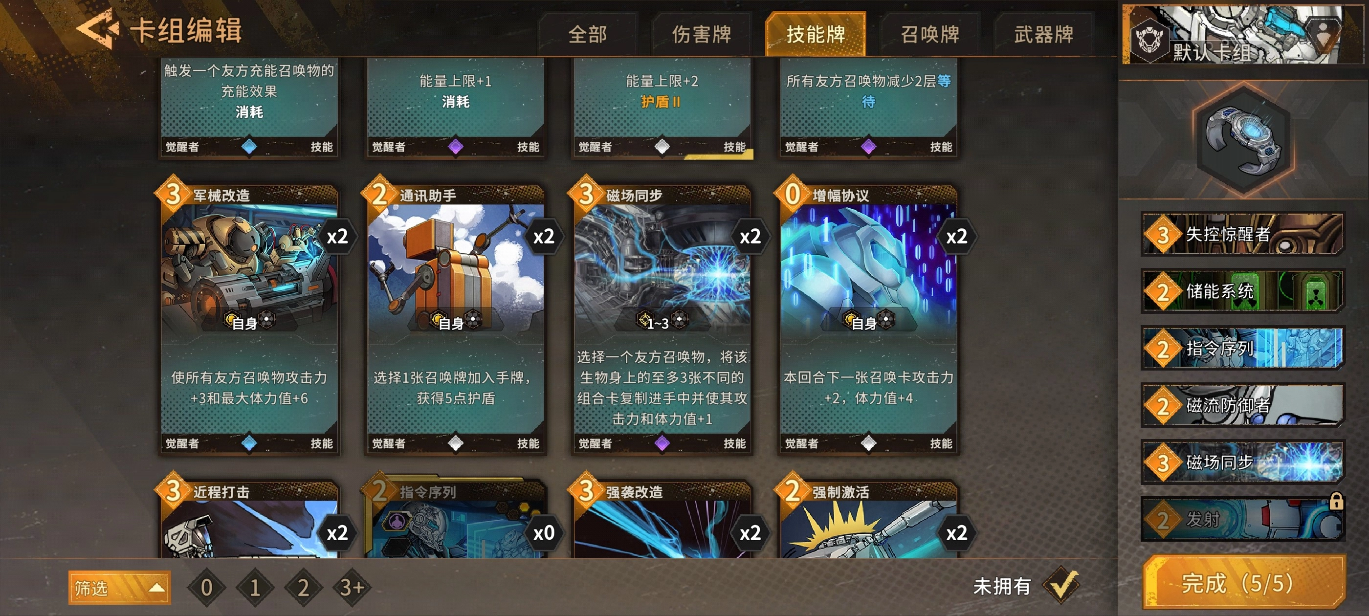 贴膜流派的核心关键卡牌是能让磁场达成同步状态的那张,缺少它的话,整个贴膜玩法的体验感会显著下滑,在卡牌选择优先级上属于最高的一级。