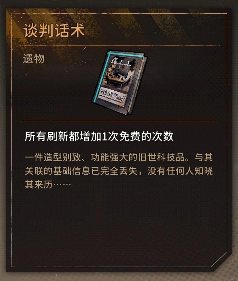 遗物:十分关键,其效果会依据词条来增加,其中米拉的快慢机模块是尤为重要的遗物。