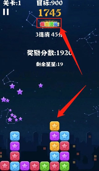 当场上再无星星能够消除,且分数达到要求时,就能成功通关了。