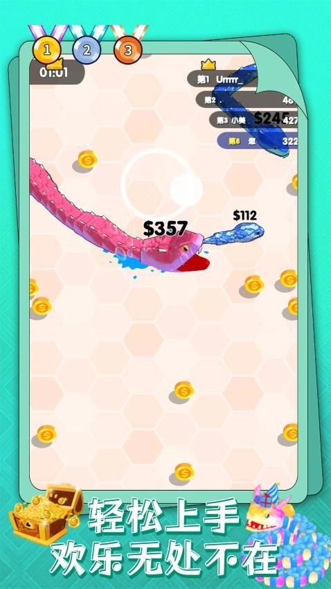 当自身的体型达到一定规模后,就能在游戏地图里对弱小的对手形成压制性的优势。你可以利用庞大的身躯将其他小蛇围困在自己的活动范围内,让它们在慌乱中自行碰壁,这样就能毫不费力地完成击杀并获取奖励道具。