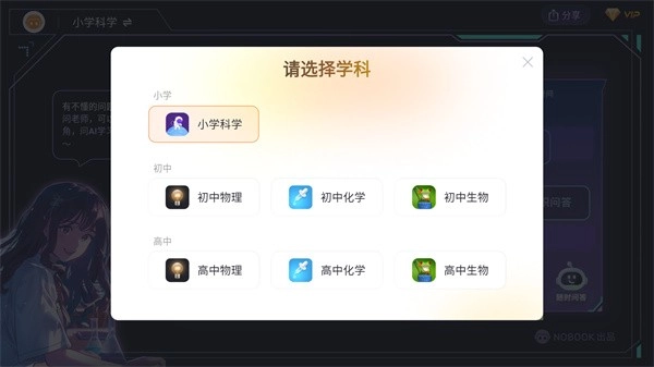玩家能够通过点击左上角的图标,随时切换已选择的学科,不同的学科能够开展的实验也各不相同。