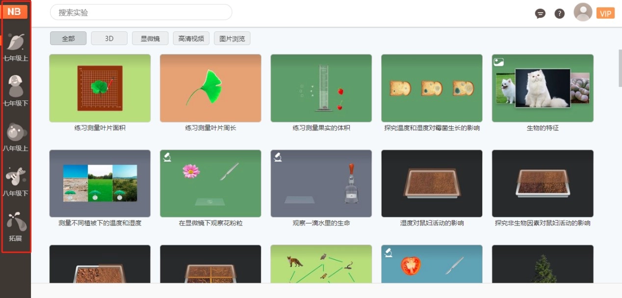 所有实验均按照教材内容进行分组编排,方便老师结合当前教学进度查找对应的实验。您可以点击选择来切换学段,并从中挑选各学段所需的实验资源。