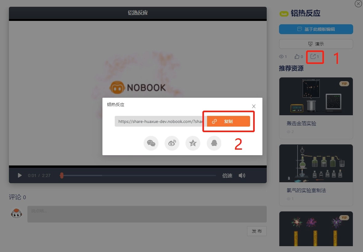 点击“复制”按钮后,就能把这个实验资源生成链接,方便在其他地方分享。