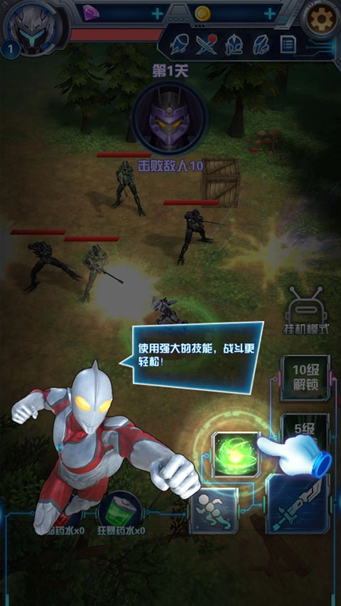 了解各关卡的独特之处,发挥你的智慧,合理搭配奥特战士的组合,争取闯过更多艰难的关卡。通关后,就能解锁新的道具——符文。
