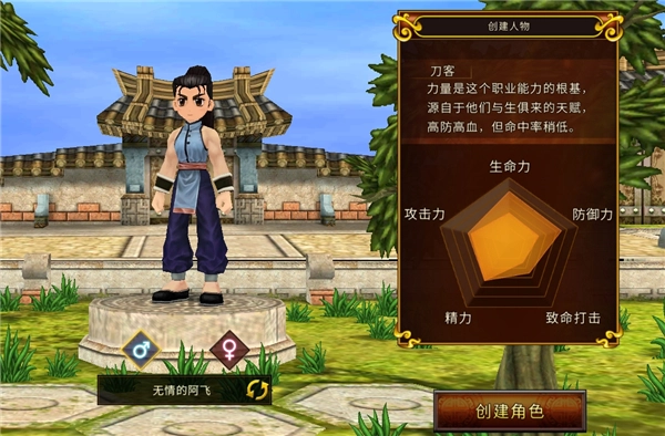 刀客这一职业专精于刀类武器的运用,是典型的近战攻击型职业。力量属性构成了该职业能力体系的核心根基,而高防御与高生命值则是他们先天具备的优势天赋,美中不足的是命中率相对偏低。综合来看,刀客兼具出色的攻击与防御能力,整体实力较为均衡,十分适合承担冲锋陷阵、抵御敌人的任务。