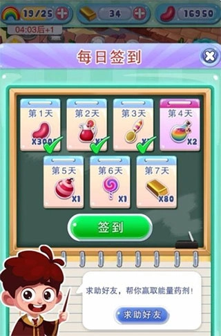 每天首次登录宾果消消消时,系统会直接弹出签到提示,连续签到能获取各类奖励,其中自然也包含能量瓶。