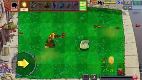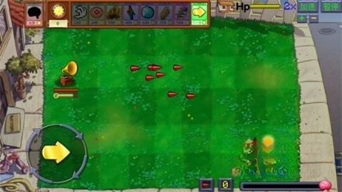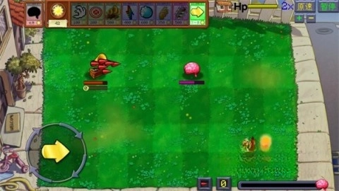 直接打开游戏后进入关卡挑战,左下角设有按键,能够操控植物快速移动。