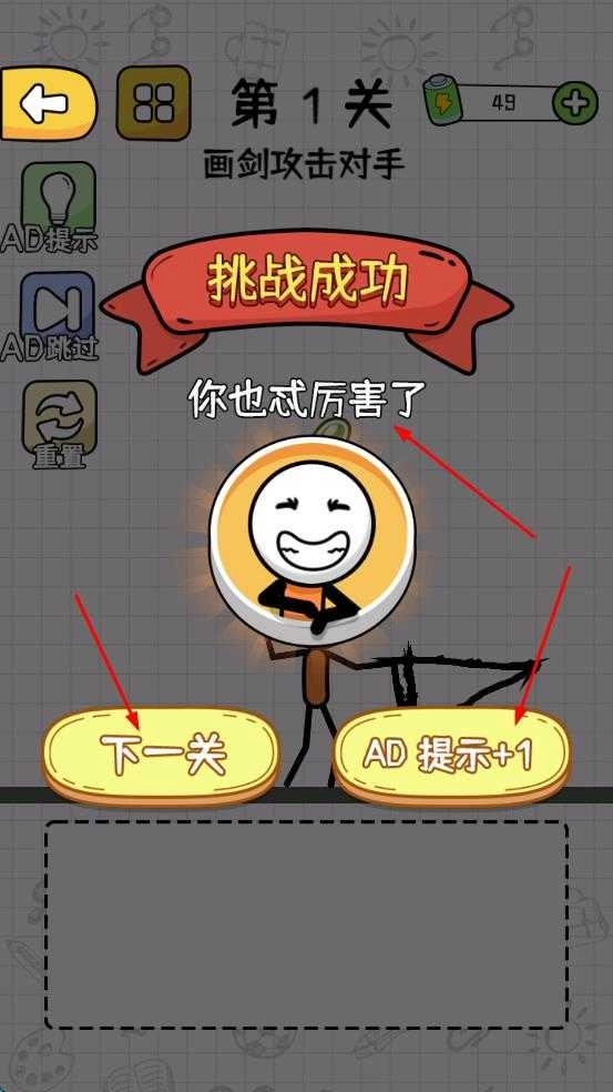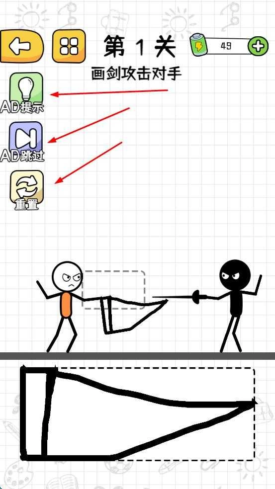 在关卡里按照提示画剑,先试着自己解谜,要是画错了可以点重置重新来,努力拿到三星通关。