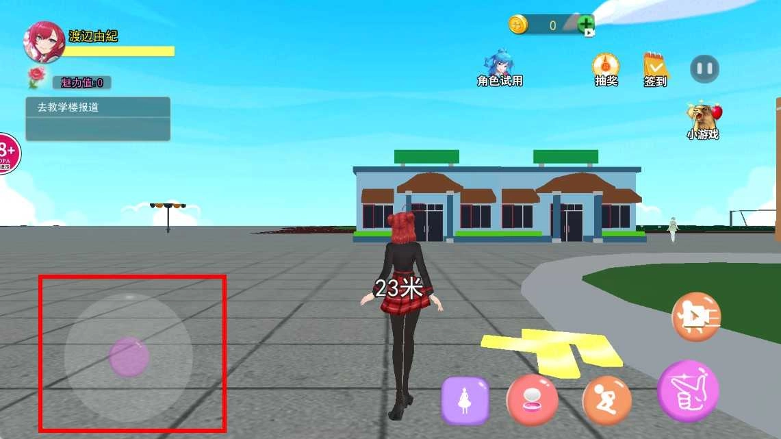 借助左侧的虚拟摇杆,你可以操控角色在校园里移动,前往教学楼之类的目标地点,从而推动任务向前发展。