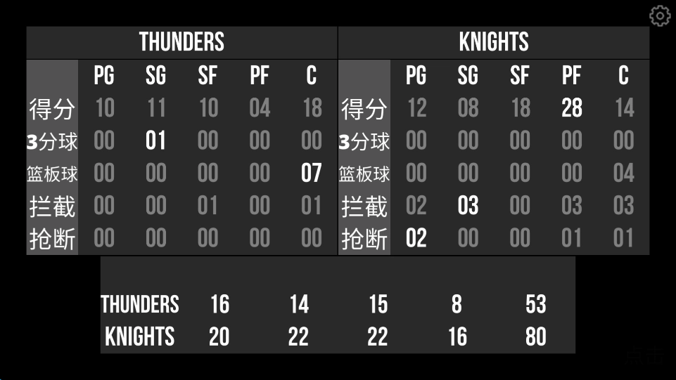 游戏结束后,能查看各球队球员的具体表现,下方还会显示得分情况。