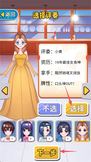 挑选好评委后,点击右边的“选择”按钮来确认,接着点击“下一步”推进烹饪步骤。