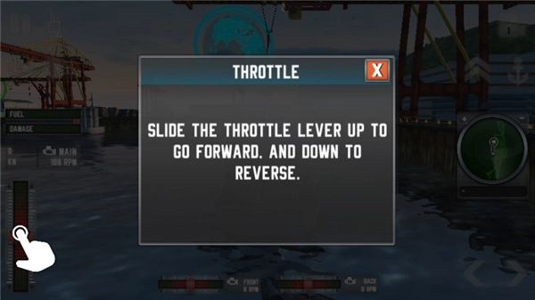 向上滑动油门杆就可以向前开动船舶,向下则反之;