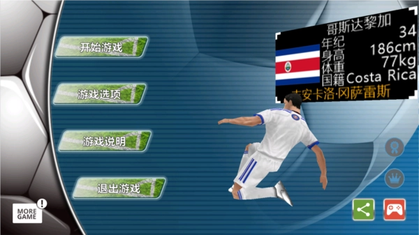 这款游戏上手简单,但若想精通则需要深入研究:只要你能和AI队友精准把握配合时机,就能打出流畅连贯的进攻,完成精彩的射门。如果需要详细的操作指导,可以在主菜单的“游戏说明/帮助”里查看。操作设置采用了国际上广泛认可的流行方案:一个方向圆盘用于控制角色移动(圆盘内圈对应常速移动,外圈对应加速移动),另外设有4个功能按键,分别对应短传、长传、射门和特殊带球这几项核心操作。