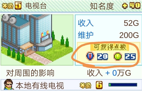 电视台推荐升到满级,作为前中期的建筑,它能提供20件衣服和25个棒球,带来相当高的点数收益。如果条件允许,前中期可以建造三到四个电视台来快速刷取点数。