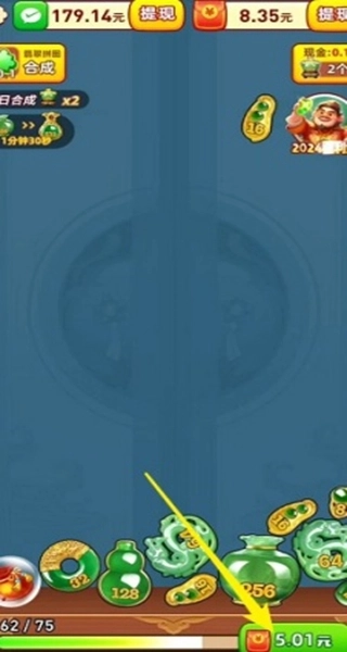 1.操控金玉造型的棋子自由下落,通过合并相同等级的物品实现升级进化,从基础矿石逐步合成到终极财神宝物,体验阶梯式的成长乐趣。