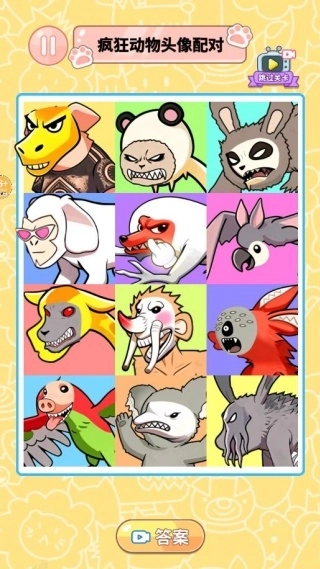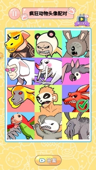 3、在网格里精准找到并提取与头像相同或有联系的另一只搞怪动物,完成配对就能通关。