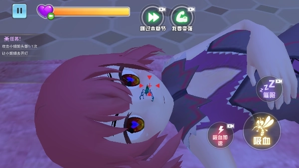5、等这个血条填满,吸够血之后,小姐姐就会睁开眼睛去把灯打开啦。