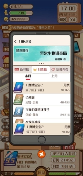 在写作的过程里,你的写作能力和码字速度会随着熟练度的提升而不断进步。刚开始选择写作题材时,尽量优先挑选热门题材;等你的能力变得越来越强,就算是冷门题材,你也能轻松驾驭、游刃有余地创作啦。