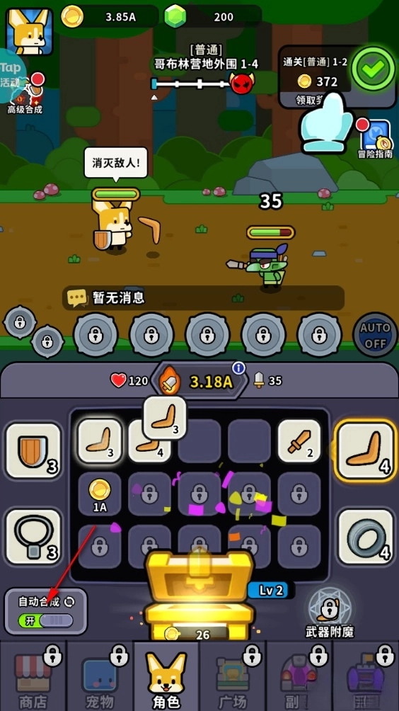 进入游戏后,先点击下方的宝箱,接着点击相同的道具,就能合成更高级的道具了。