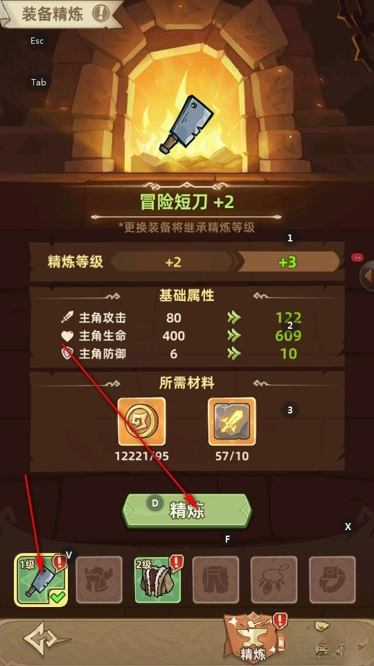 选择我们需要精炼的装备,然后点击进行精炼,我们不用担心前期精炼材料会被浪费,换装备的时候会连同精炼等级一起继承。