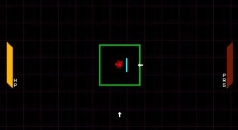 战斗玩法:遭遇敌人后会进入战斗。战斗中会播放一段midi,音符会随着midi的播放从上、下、左、右四个方向袭来,你需要通过方向键旋转盾牌抵挡音符。战斗途中,如果你血量没了,那么就...该罚!