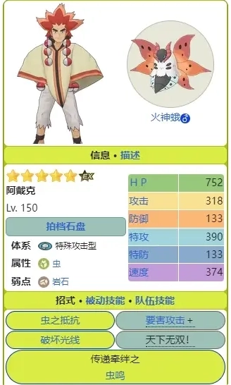 阿戴克与火神蛾:作为老牌虫系输出手,尽管虫系本身强力选手较为稀缺,但这里不太推荐自选火神蛾。首先是卡气问题,四格气槽的破坏光线在一宝情况下使用体验较差;其次,下级的具甲武者扩盘后威力大幅提升,同样定位攻击型,且具甲武者可通过普池抽卡轻松达到五宝,搭配EX后应对冠军战完全没问题。而火神蛾作为群星角色,除了喂糖或缤纷池歪出,很难达到具甲武者的强度,因此不太建议自选。推荐指数:★