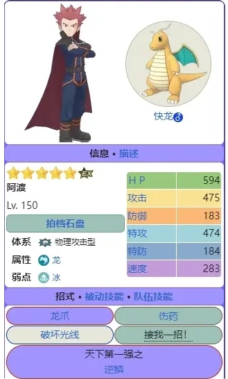 阿渡与快龙这对组合算是龙系里的老牌输出手了,不过他们的作战方式偏向“自残型”。自身携带的增益效果相当一般,即便DENA后续对其盘进行了扩充调整,我依旧觉得整体表现不尽如人意。