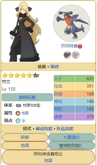竹兰&烈咬陆鲨作为老牌地面系拍组,在我看来实力比较拉胯,基本派不上用场。首先,它的拍招因为存在mega效应,实际效果约等于废掉;其次,它对沙暴天气的依赖度极高,没有沙暴时强度直线下降,就算有沙暴辅助,表现也很普通——技能动画的时长加上沙暴本身造成的刮伤效果,会导致沙暴状态很快就结束。只有抽到五宝后,地龙才能在拍击后自己开启沙暴来延长天气持续时间,这时候才算勉强能用。如果要开沙暴体系的话,辅助型的海兔兽会是个选择,有一定作用,但同样不推荐在这里通过自选来开沙暴体系,毕竟这样做并不能让队伍的整体强度得到有效提升。综合来看,这个拍组的推荐指数只有一颗星。