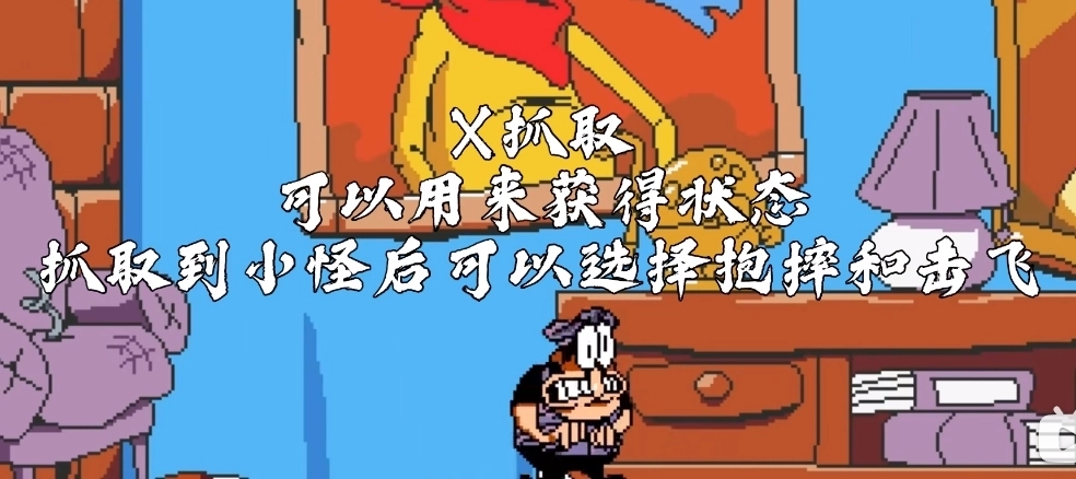 2、“X”:可用于获取状态,抓取小怪后能选择抱摔或击飞。