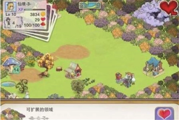 2、通过扩大规模、积累经验以及完成任务,获取金币或爱心以解锁更多土地。