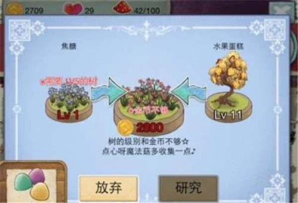 5、点心树的升级方式为:玩家点击树的根部,并消耗一定数量的魔法蘑菇即可完成。