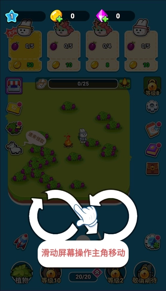 1、滑动屏幕操作主角进行移动。