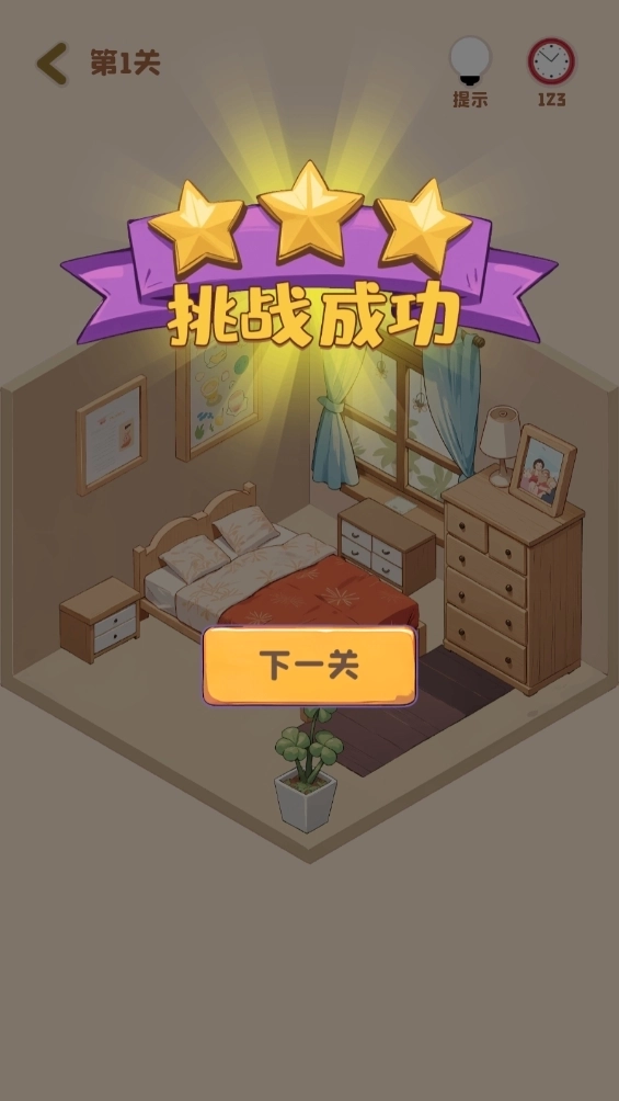 4、全部家具装饰完毕即挑战成功,可以进入下一关。