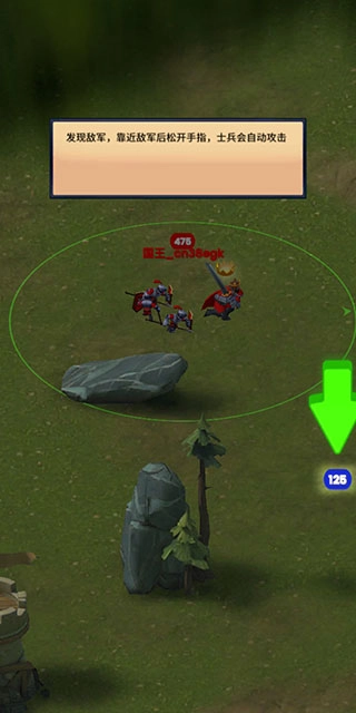 1、滑动屏幕,让玩家操控己方国王接近中立单位,以此完成招募操作。