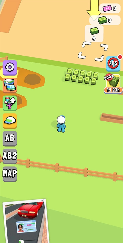 进入游戏后,操控小蓝人通过滑动屏幕移动到指定的方框位置,就能消耗金币解锁基础设备——第一台收银台;之后的货架、种植架、鸡舍等设施都采用一样的操作方式,要是金币不够就没办法解锁;解锁货架后,去番茄种植架上采摘果实,然后手动把货补到货架上;想卖鸡蛋的话,得先喂鸡吃苹果来触发产蛋的机制,再把新鲜的鸡蛋摆到货架上——所有的经营逻辑都很自然直观,不用什么门槛就能上手,但里面却藏着策略上的深度。
