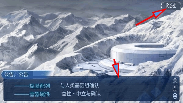 3、接下来你会进入游戏公告提醒界面。要是想了解游戏剧情,你可以持续点击公告下方的文字,逐条查看就行;要是想直接跳过,点击右上角的按钮即可。