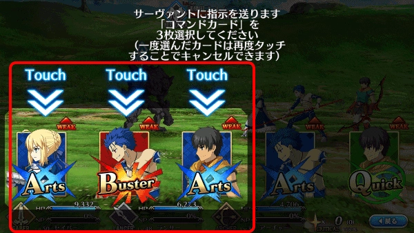 6、向服务端发送指令,指令卡需挑选3张已选定的卡片,若再次触摸,即可取消选择。