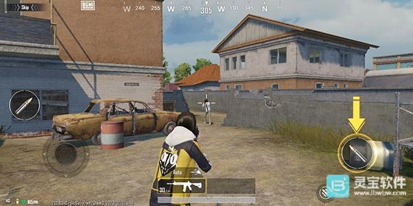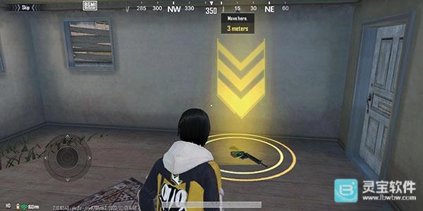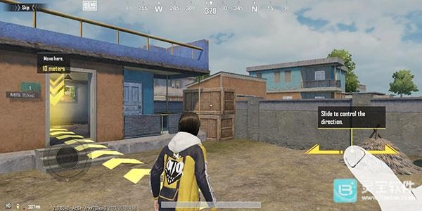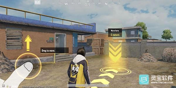 1、从空中跳伞降落到地面后,通过拖动屏幕左下角的虚拟轮盘,即可操控角色进行移动。