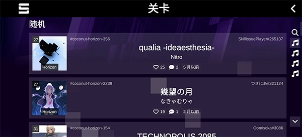 启动后三步即可进入游戏世界:先选择语言,接着添加可信的自定义服务器(像SonolusPJSK、SonolusCN这类活跃节点都可以),然后就能浏览、搜索海量玩家谱面,之后就能立即开始游戏。所有关卡都能实时联网加载,也支持离线缓存;每一局都会自动录制高清的操作回放,你可以一键分享到社区,或者导出成视频,这样既能帮助你复盘技巧,也能传播高光时刻,还能向大神学习经验。