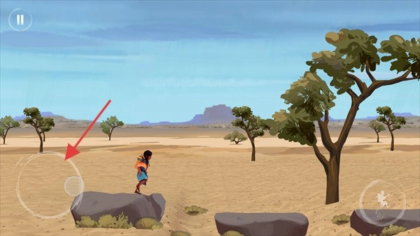 2、左侧的虚拟摇杆可用来控制角色的移动方向,比如让角色在石块区域行走。