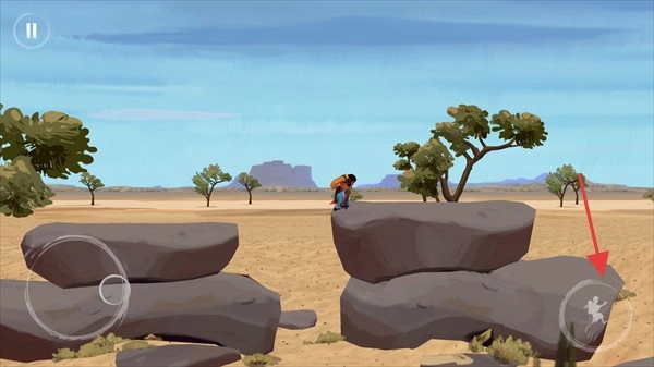 3、点击右侧的跳跃按钮,角色就能完成跳跃动作,借此跨过石块之类的障碍物,从而推进游戏的进行。