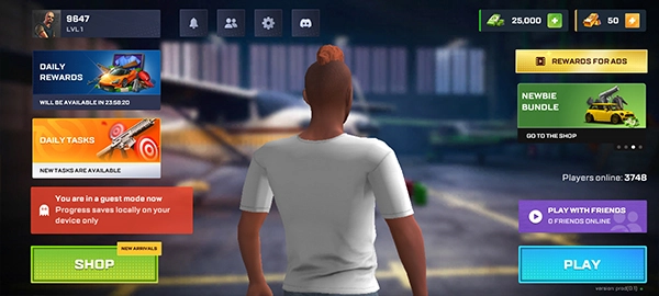 5、接着正式进入游戏界面,界面左上角显示着昵称信息,右上角则呈现当前的资金数额,点击左下角的SHOP按钮即可进入商店。