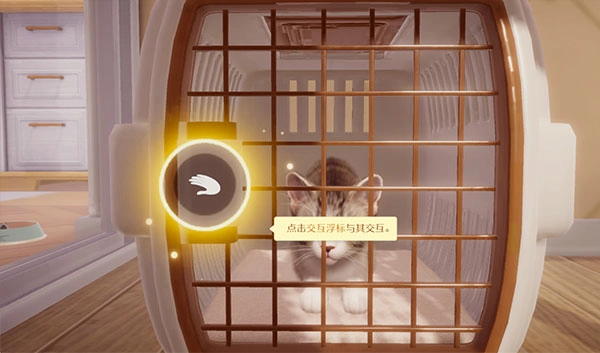 回到家里,屏幕边缘会出现柔和的交互浮标。点击这个浮标,你可以给它喂食、梳毛、陪它玩耍,或者就安静地坐在它身旁。