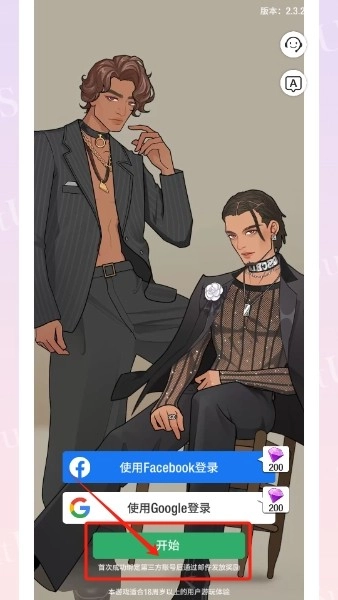 1、点击开始,这里需要注意的是,通过上述两种方式登录游戏,能够获得200钻石的奖励。